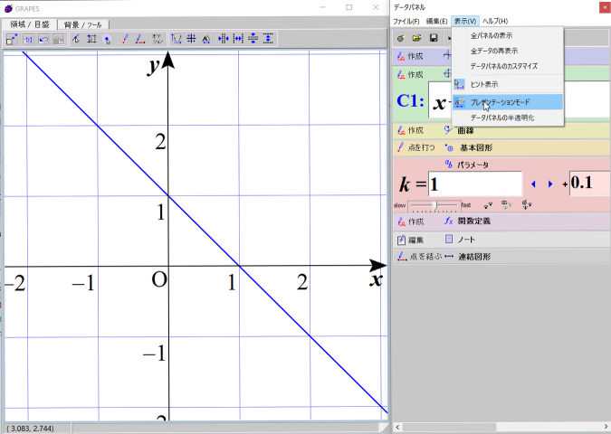 研究授業で、grapesのサンプルを使って、「線形計画法」を行おうと思っている者です。x+y=k と置いたときの、kの値が表示されるのがとても魅力的なのですが、本日、試しのスクリーンに投影してみたら、字が小さくて見えづらいことが分かりました。