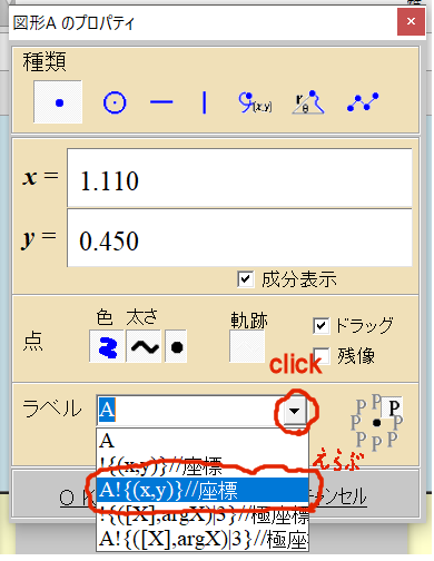 添付ファイルのように最初に座標が表示されているとき、ラベル欄はどう使うのでしょうか。また残像とは何でしょうか。